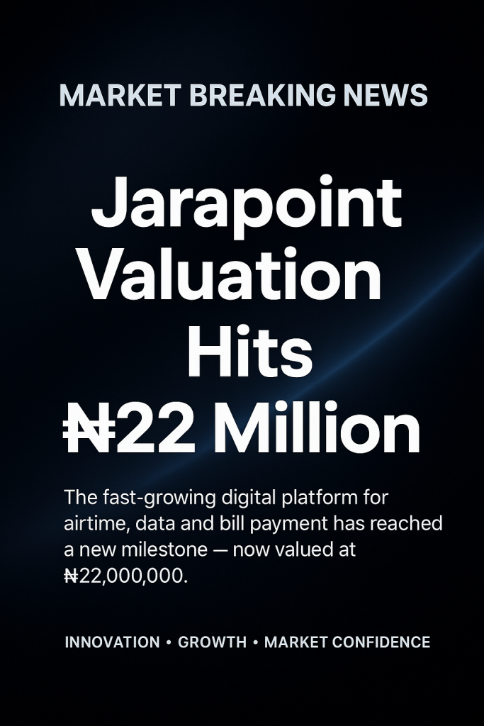 Lagos, Nigeria — Jarapoint, a fast-growing player in the African digital services and fintech sector, has announced a new valuation of ₦22 million, a major leap from ₦10 million just three months ago. This milestone was reached in only 14 months since launch, reflecting strong product adoption, market fit, and growing revenue performance.